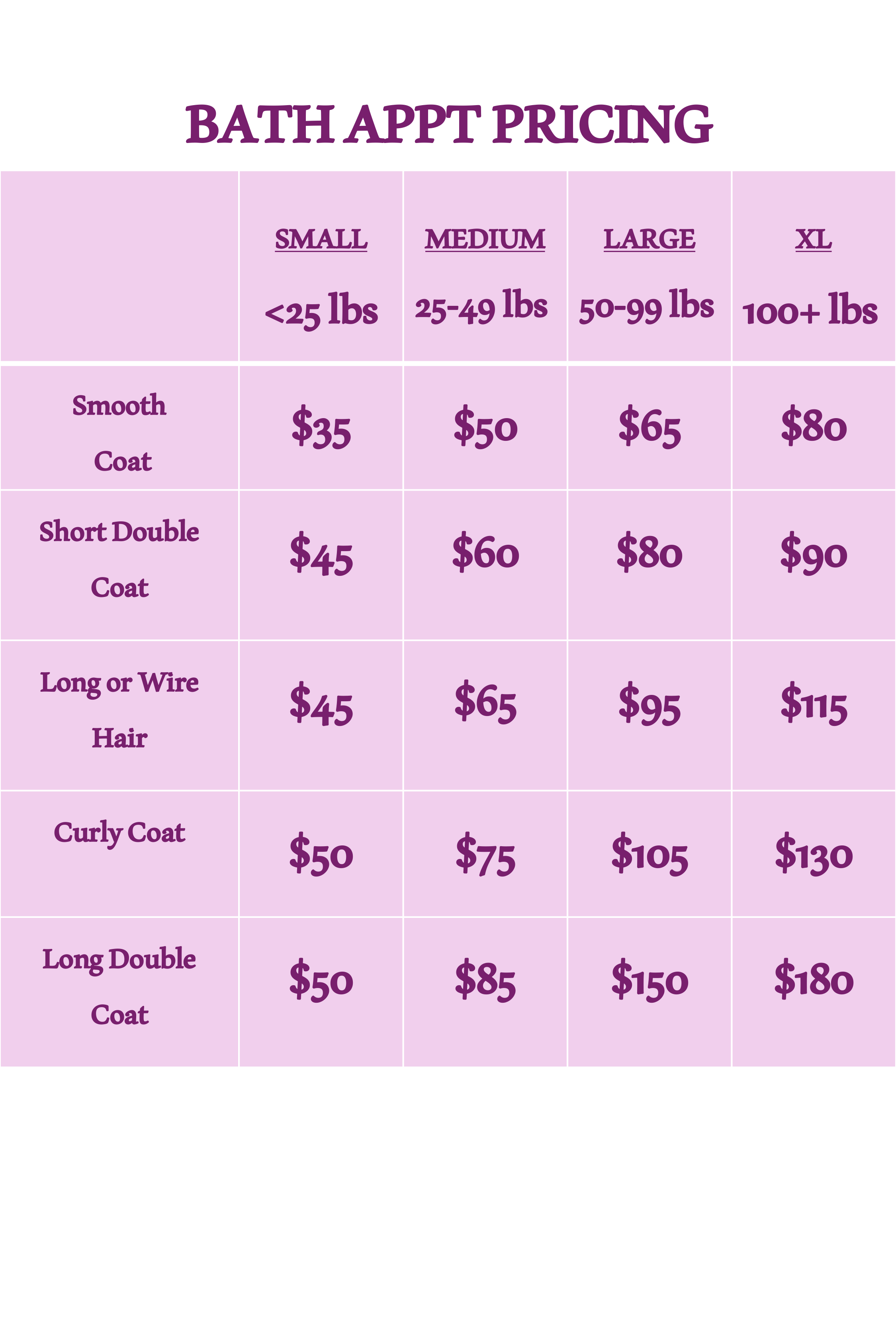 Feel Free to give us a call or send an email with a photo of your dog if you have any confusion about pricing